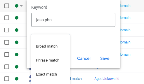2. Gunakan Jenis Kecocokan Kata Kunci yang Tepat