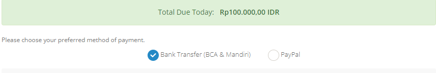 Dapurhosting tidak memiliki banyak alternatif pembayaran, hanya menyediakan metode pembayaran manual melalui bank BCA dan Mandiri, serta pembayaran melalui PayPal.
