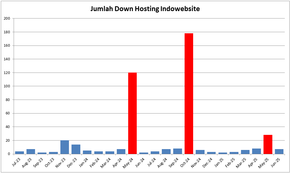 Berdasarkan pemantauan, rata-rata jumlah kasus down pada Indowebsite mencapai 18,83 kasus per bulan.