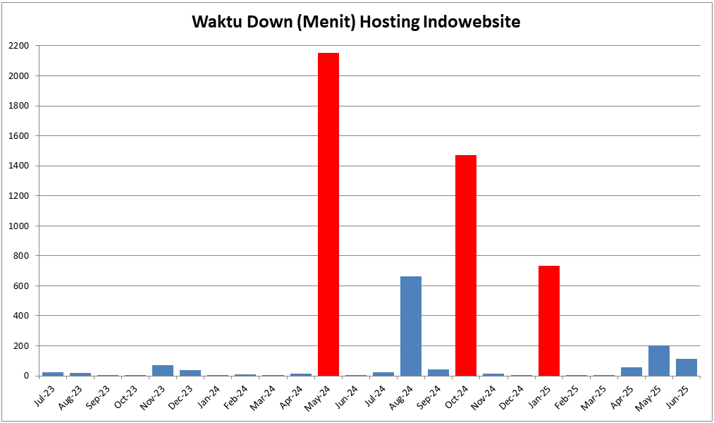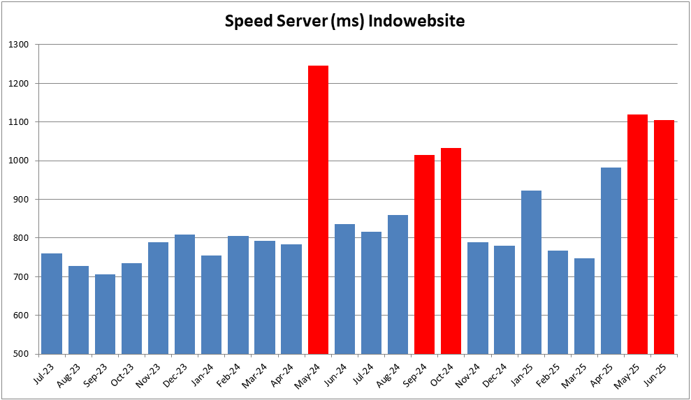 Rata-rata tersebut menunjukkan bahwa performa server Indowebsite masih mampu memberikan layanan yang memadai bagi penggunanya, meskipun adanya lonjakan pada beberapa bulan tertentu menjadi catatan penting yang tidak bisa diabaikan.