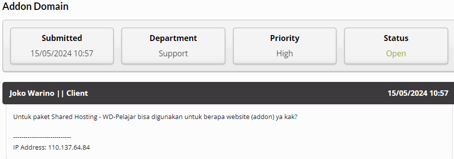 Sangat disayangkan bila ingin menghubungi PusatHosting melalui tiket perlu melakukan pendaftaran lagi karena tiket memiliki URL yang berbeda dari member area.