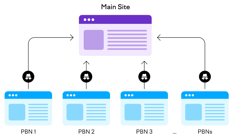 Jangan menautkan semua website dalam PBN ke satu money site secara langsung, karena ini akan dengan mudah dikenali oleh mesin pencari sebagai skema manipulatif.